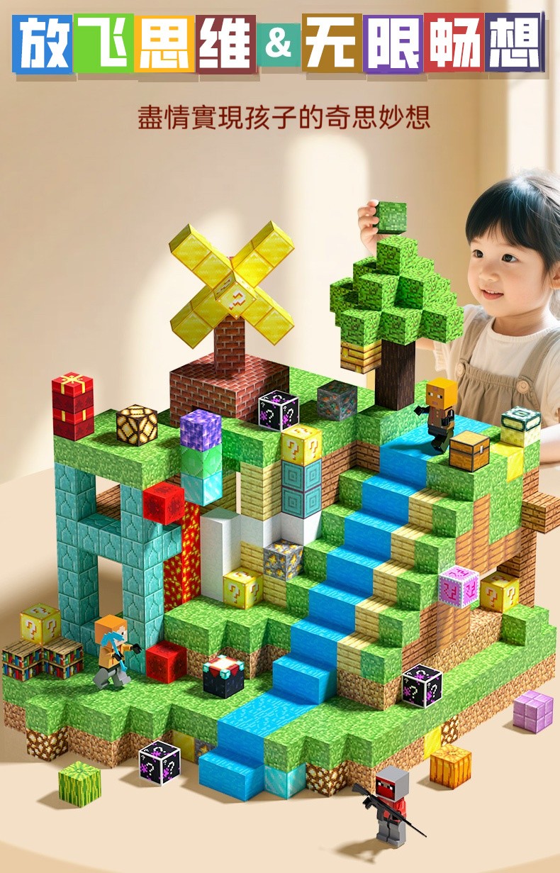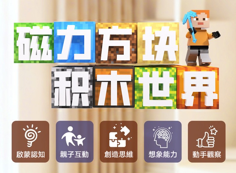 【我的世界磁力方塊終極珍藏】高還原度磁性積木 自由拼搭創意世界 兒童益智拼裝玩具 送史蒂夫模型 台灣現貨